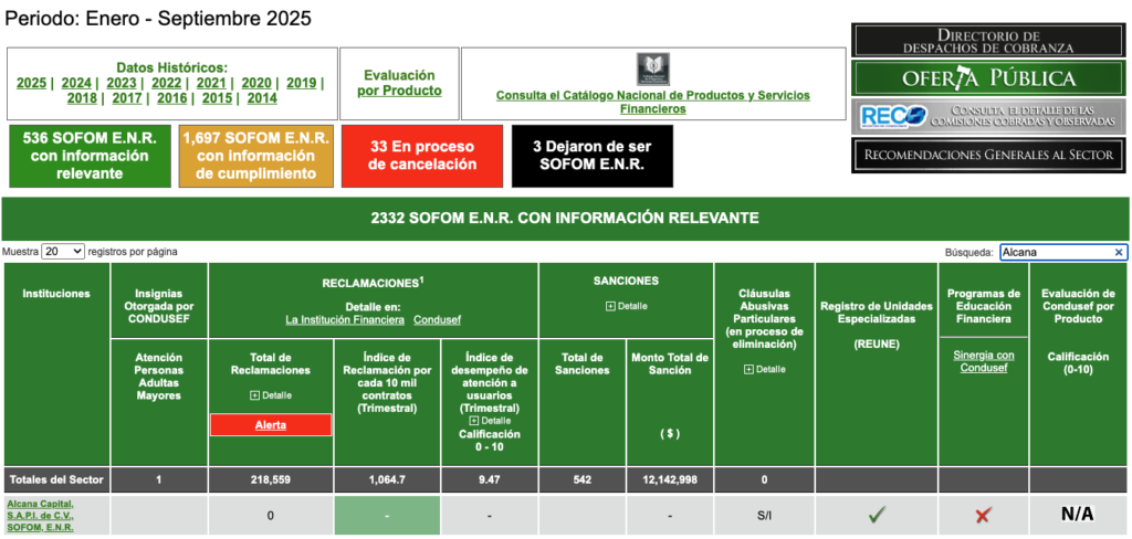 El Buró de Entidades Financieras contiene información de Alcana Capital, S.A.P.I. de C.V., SOFOM, E.N.R., sobre nuestro desempeño frente a los usuarios por la prestación de productos y servicios. Te invitamos a consultarlo en la página http://www.buro.gob.mx